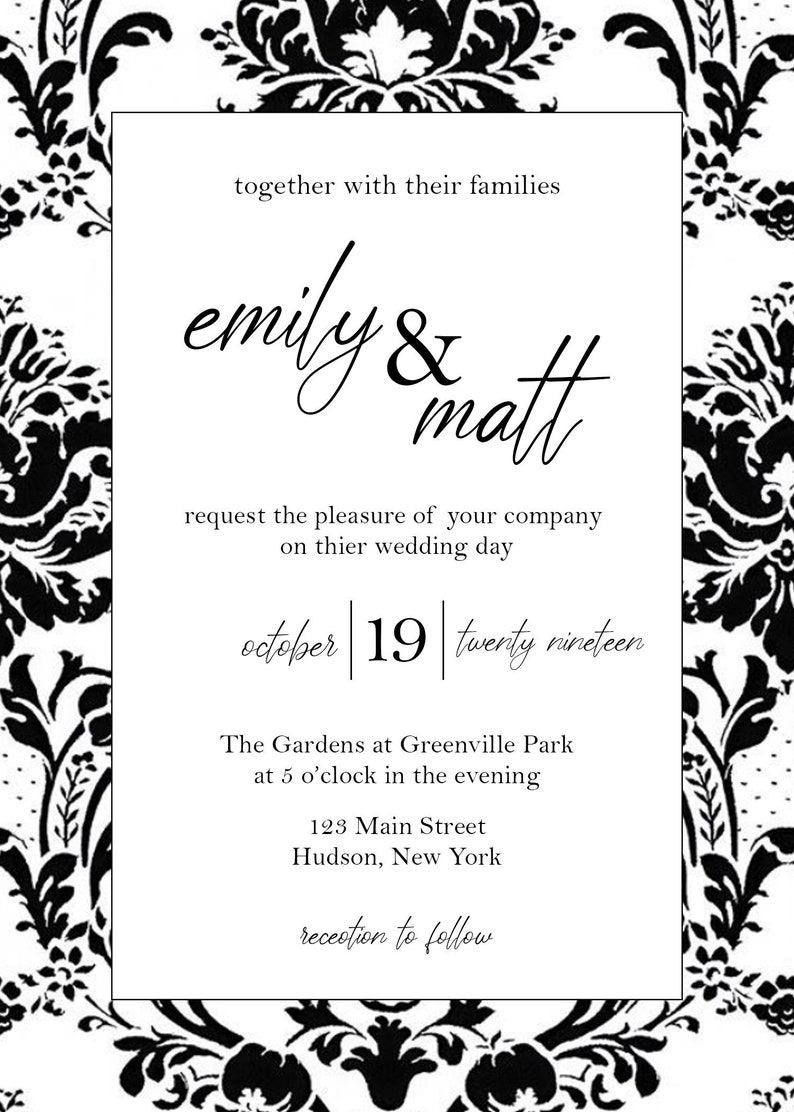 . 49 Stylish Wedding Invitation Templates Damask Wedding Invitations Elegant Formal Wedding Invitations Black White Yellow Damask Inspired Lepenn Designs Fabulous Paper Blog